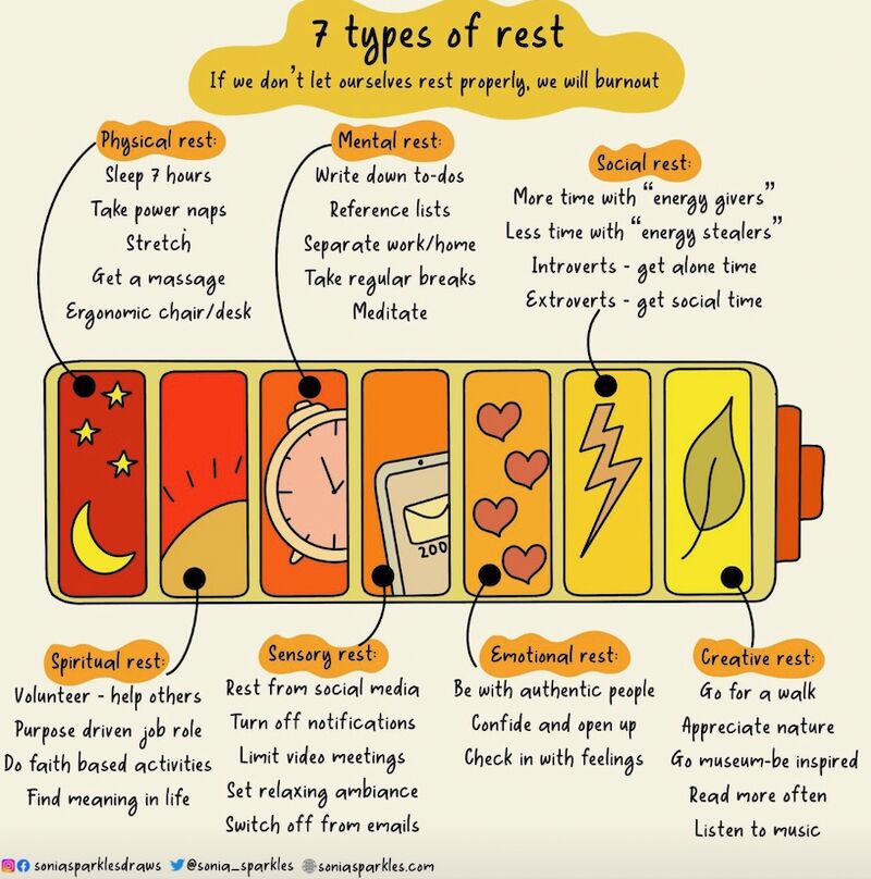 But did you know that, according to researchers, there are seven types of rest that we need on a regular basis in order to be healthy?