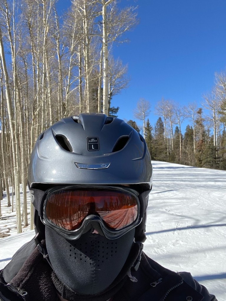 When skiing, I intentionally remind myself to enjoy my surroundings. There is such majestic beauty in these mountains, and I don’t want to miss it. So, I will often stop in the middle of a run and take in the scenery. Doing this brings me peace and increases my enjoyment of the experience.